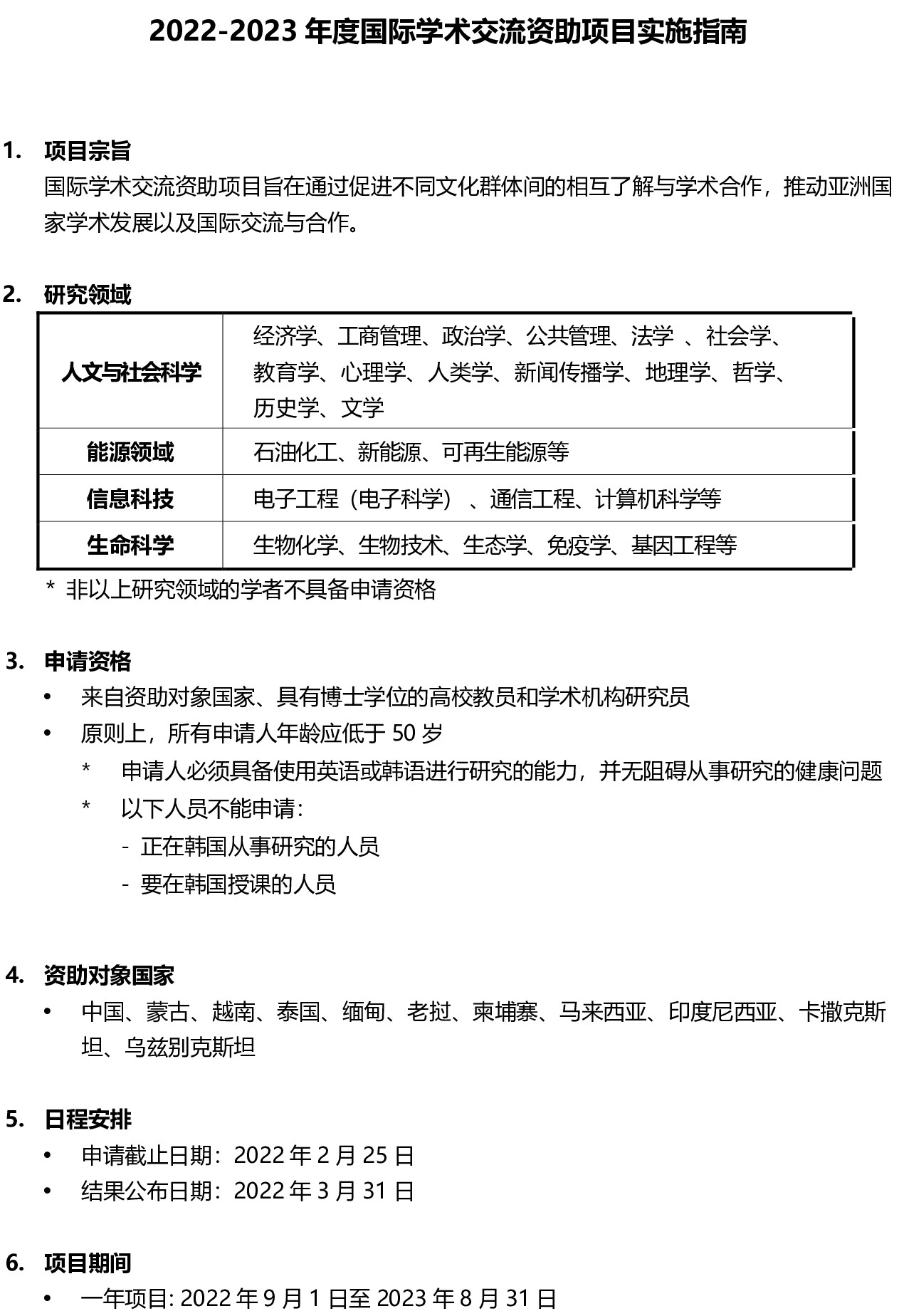 2022-2023年度国际学术交流资助项目