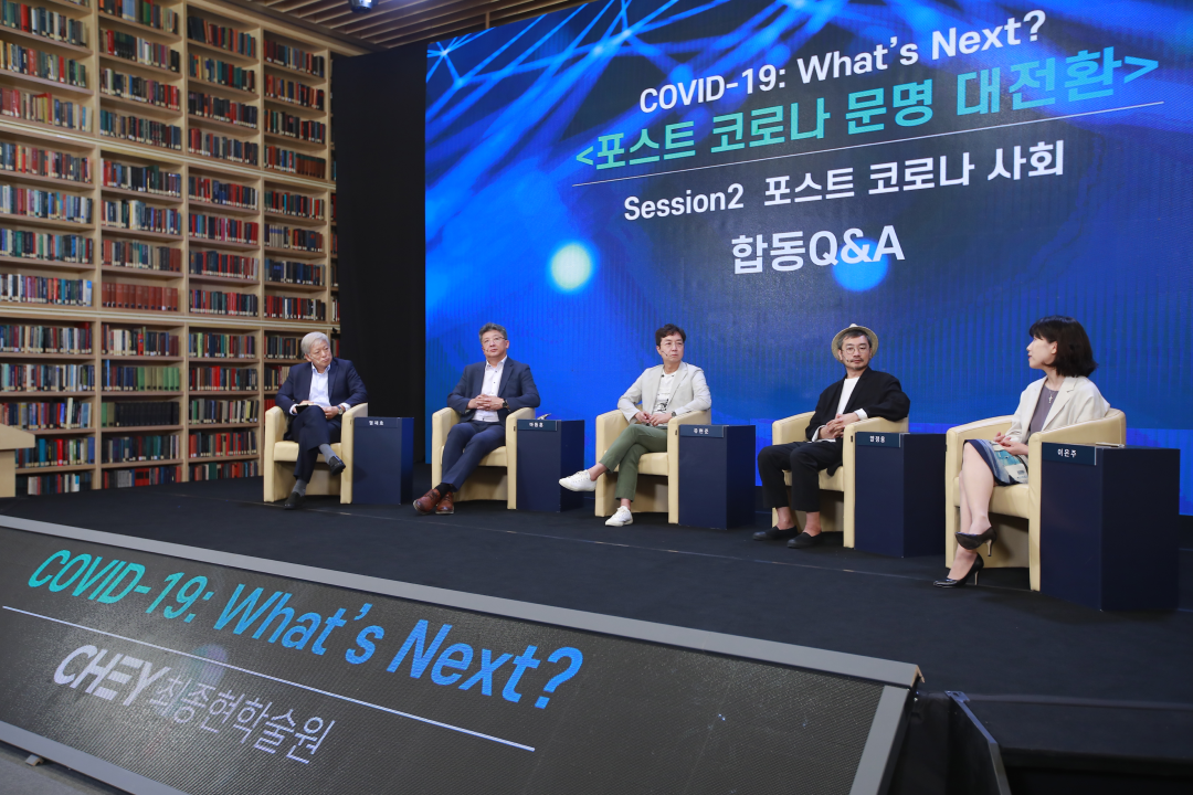 염재호 前 고려대 총장의 사회로 진행된 이번 행사는 ‘코로나 이후 문명의 전환’이라는 대주제 하에 두 세션으로 나뉘어 진행되었다. ‘코로나 이후의 삶’을 다룬 첫 세션은 최인철 서울대 심리학과 교수, 이석재 서울대 철학과 교수, 장덕진 서울대 사회학과 교수, 그리고 송길영 다음소프트 부사장의 발표로 진행되었다. ‘포스트 코로나 사회’를 논의한 두번째 세션은 마동훈 고려대 미디어학부 교수, 유현준 홍익대 건축도시대학 교수, 양정웅 극단 ‘여행자’ 예술감독, 그리고 이은주 서울대 언론정보학과 교수의 발표로 진행되었다.