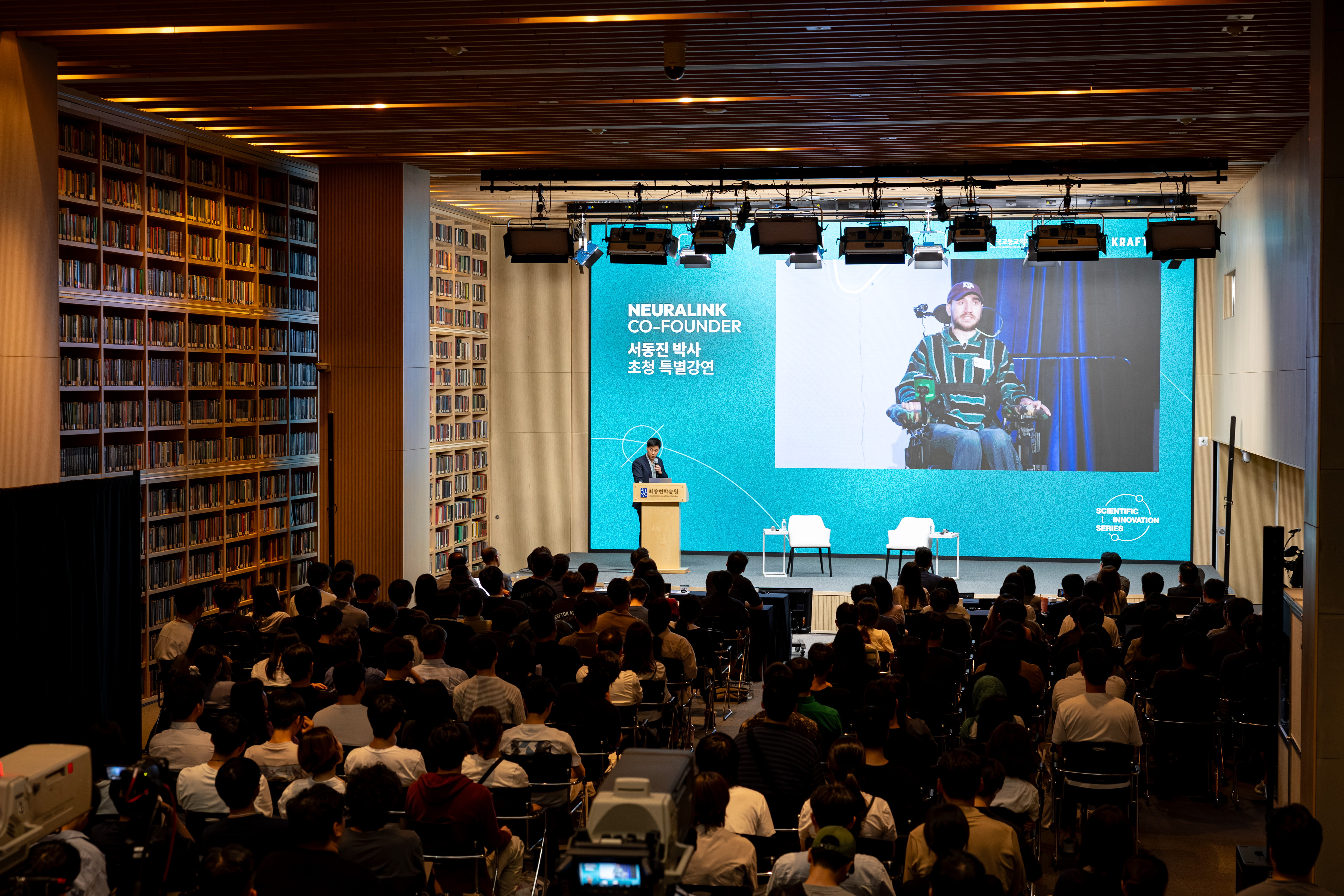 특강 이후 진행된 대담에서는 뇌-컴퓨터 인터페이스(BCI) 기술의 현황과 잠재력에 대한 논의에서부터 뉴럴링크의 기업 문화와 미래 비전에 이르기까지 다양한 주제에 대한 질문과 깊이 있는 토론이 이어졌다. 서동진 박사는 뉴럴링크가 전체 뇌와 기계를 연결하는 ‘전뇌 인터페이스’(Whole Brain Interface)를 개발하는 것이 최종 목표라고 설명하면서 이를 통해 인간의 고통을 줄이고 생물학적인 요소에 의한 제약을 넘어설 수 있기를 바란다고 부연했다. 특히 향후 3-4년 내에 건강한 일반인도 뇌 인터페이스 이식을 선택하여 학습력, 기억력 증강과 시각 복원 등 인간 능력의 확장과 인공지능과의 융합을 통해 새로운 상상력을 불러올 수 있는 전환점이 올 것이라고 말했다.