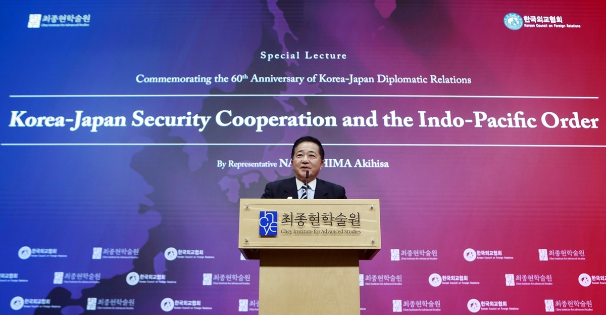 나가시마 보좌관은 이날 오후 한국외교협회와 최종현학술원이 개최한 특강에서 이를 포함해 '역사 문제를 올바르게 관리하기 위한 3대 원칙'을 제시했다.