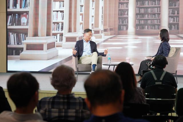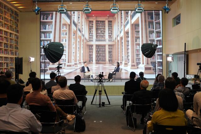 양자컴퓨터 기업 '아이온큐'의 창업자인 김정상 미국 듀크대 교수가 27일 최종현학술원과 한국고등교육재단이 공동 기획한 전문가 대담 시리즈 ‘프로페썰說’ 녹화 현장에서 대담하고 있다. 최종현학술원 제공