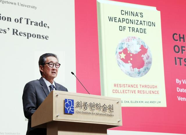 8일 최종현학술원에 따르면 빅터 차 미국 전략국제문제연구소(CSIS) 지정학·외교정책 담당 소장 겸 조지타운대 석좌교수는 6일 서울 강남구 최종현학술원에서 열린 특별강연 때 상대국의 주권적 선택을 바꾸기 위해 무역과 투자를 수단으로 활용하는 행위를 '경제적 강압'이라고 정의했다. 그러면서 중국이 1997년 이후 최소 600건 이상의 경제적 강압 사례를 통해 18개국, 470개 기업을 압박해왔다고 지적했다.