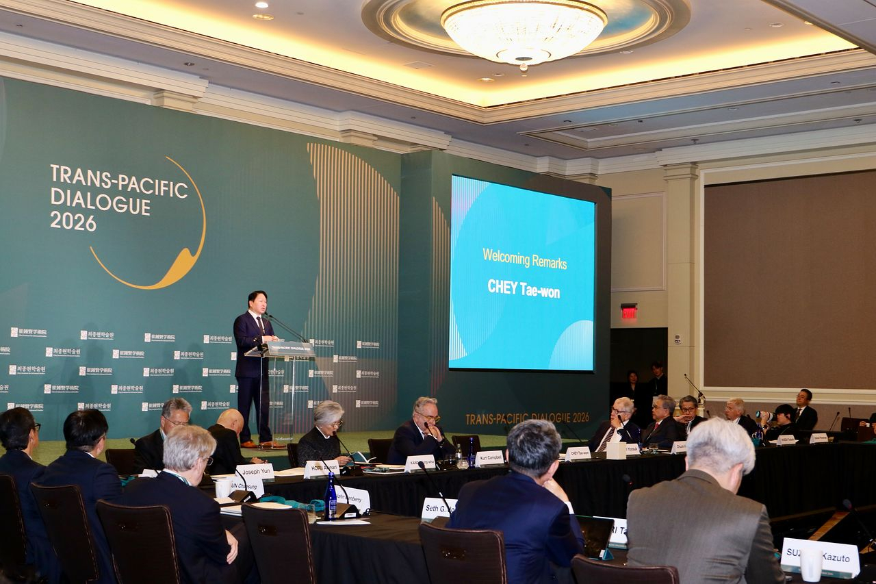 최태원 SK그룹 회장이 20일(현지시간) 워싱턴 DC에서 최종현학술원 주최로 열린 트랜스 퍼시픽 다이얼로그(TPD) 행사에 참여해 연설을 하고 있다. 워싱턴특파원단