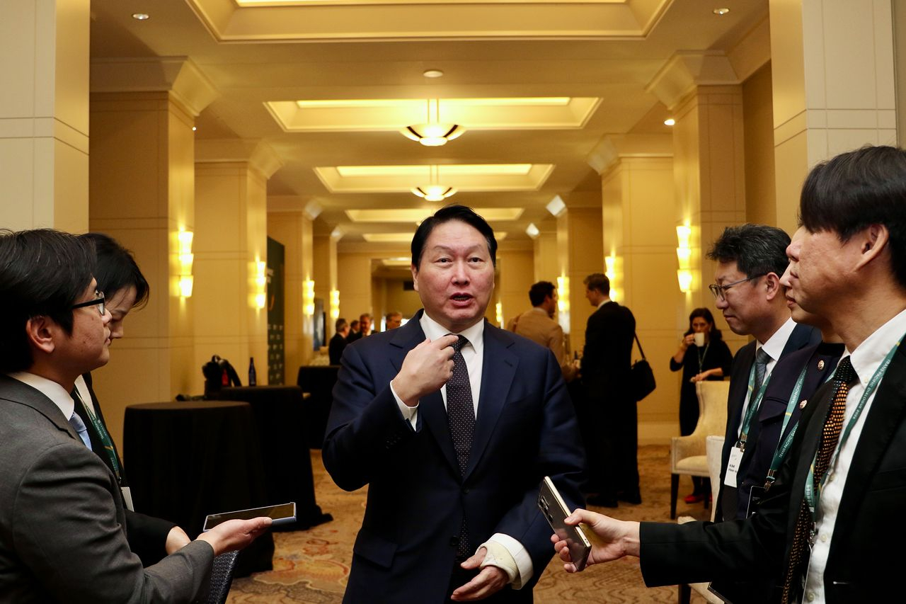 최 회장은 도널드 트럼프 미국 대통령이 전세계 국가를 상대로 부과했던 상호관세를 위법이라고 판단한 미 연방 대법원의 결정에 대한 질문에는 “판결문을 보고 나중에 한 번 말씀드릴 수 있는지 보겠다”며 신중한 태도를 취했다. 한국이 미국과 무역과 안보를 포괄한 합의를 도출하고 세부 협상을 진행하는 상황에 대해선 “코리아가 원팀이 돼서 이런 문제들을 잘 소화할 수 있게 하는 게 중요하다”는 의견을 피력했다.