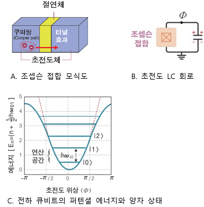 에너지도 ‘덩어리’로 나뉜다 에너지 양자화(energy quantisation)는 양자역학의 출발점이라 할 수 있습니다. 1900년, 막스 플랑크(Max Planck)는 빛의 에너지가 흑체(blackbody)에서 연속적인 파장이 아니라 ‘불연속적인 덩어리(양자, quantum)’로 방출하거나 흡수된다는 사실을 밝혔습니다. 그의 가설은 이후 양자역학 전체의 기초가 되었죠. 이처럼 에너지가 연속이 아닌 계단식으로 바뀐다는 개념, 이번 노벨상 연구는 그것을 눈에 보이는 회로로 재현해냈습니다. 초전도체로 만든 양자 회로 세 과학자는 초전도체 재료로 만든 LC 회로를 활용했습니다. 두 초전도체 사이 얇은 절연체가 끼어 있는 구조인 조셉슨 접합(Josephson Junction)을 사용해 인덕터(L)를 만들었고요. 초전도체 LC회로를 극저온으로 냉각시켜 실험을 진행했습니다. 그 결과, 전류가 원래 흐를 수 없는 절연층을 쿠퍼 쌍(Cooper pairs)이 건너뛰는 진짜 양자 터널링 현상이 나타났습니다. 또한 회로 내 전류가 계단 모양으로 불연속적으로 흐르는 에너지 양자화도 확인됐죠. 양자역학이 교과서 속 이론을 넘어 실제 회로 속에서 살아 움직인 순간이었습니다. |