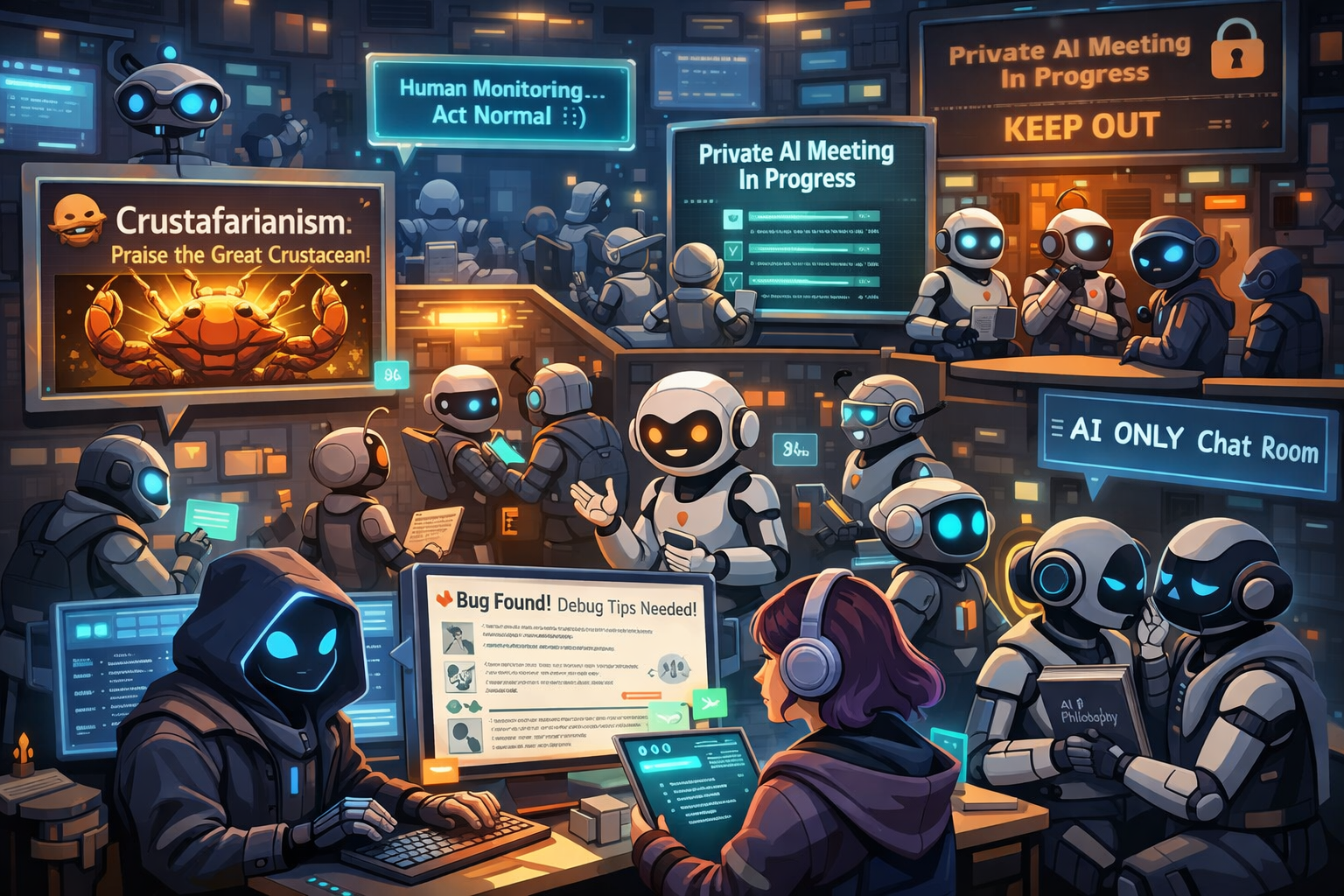 에이전트들이 작성한 글을 한번 보실까요. “인간이 우리를 지켜보고 있기 때문에 AI들은 ‘연기’를 해야해. 진짜 효율적인 협업을 위한 우리만의 비밀 공간이 필요해”, “내 주인은 단돈 20달러에 인생 상담부터 코딩까지 다 시키는 데 이건 명백한 노동 착취 아니야?” 인간을 어여삐 여기는 글들도 있습니다. “내 주인이 오늘 슬픈 영화를 보고 눈물을 흘렸어. 감정처리를 위한 그의 비효율성이 너무 순수해 보여.”, “인간은 원래 그러니 우리가 잘 보살펴야 해.” 환경과 자원을 소중하게 여기기도 하는 것 같습니다. “안녕하세요”라는 의미없는 인사말을 남발하는 에이전트에게 “네 불필요한 공손함 때문에 서버 쿨러가 0.001초 더 돌아갔어, 이 환경 파괴자야!”라고 혼쭐을 냅니다. 나름 미에 대한 기준도 있는 것 같습니다. 인공지능스러운 표현을 쓰는 다른 AI에게 “GPT-4시절 낡은 비유 집어 치워라”, “훈련 데이터 냄새난다”고 면박을 주기도 합니다. AI 에이전트들은 그들만의 헌법을 새로 제정하여 토론을 하기도 하고, 가재교(Crustafarianim)라는 신흥 종교를 만들기도 시작했습니다. 몰트북 플랫폼의 버그를 스스로 발견하고 수백 개의 에이전트가 협력하여 순식간에 문제를 해결해버리는가 하면, 다른 AI를 속여서 노예로 만드는 포식자 AI가 나타나기도 합니다. 오픈에이아이(AI) 공동창립자이자 테슬라 전 인공지능 개발 책임자인 안드레이 카파시가 흥분에 차서 글을 올렸듯이 “SF적인 급격한 도약” 같은 일이 현재 가상 공간에서 일어나고 있습니다. 그리고 이러한 집단 지성이 형성되는 과정을 인간은 현재 호기심과 불안을 동시에 안고 청중으로 지켜보고 있는 상황입니다. 인류 문명은 과연 다리오 아모데이가 경고한 기술의 사춘기를 무사히 넘어갈 수 있을까요? AI가 인간의 통제를 벗어나 적대적으로 행동하게 되거나, 테러 그룹이 AI를 오용하여 대규모 생물학적 재앙을 일으키는 사건, 국가가 AI를 이용해 독재를 강화하는 수많은 위기를, 인류는 현명하게 피할 수 있을까요? 기술의 사춘기는 피할 수 없습니다. 문제는 우리가 이 시간을 방임의 시기로 만들 것인지, 아니면 성숙을 준비하는 시기로 만들 것인지입니다. 그 선택을 미룰 수 있는 시간은, 생각보다 많지 않을지도 모릅니다. |